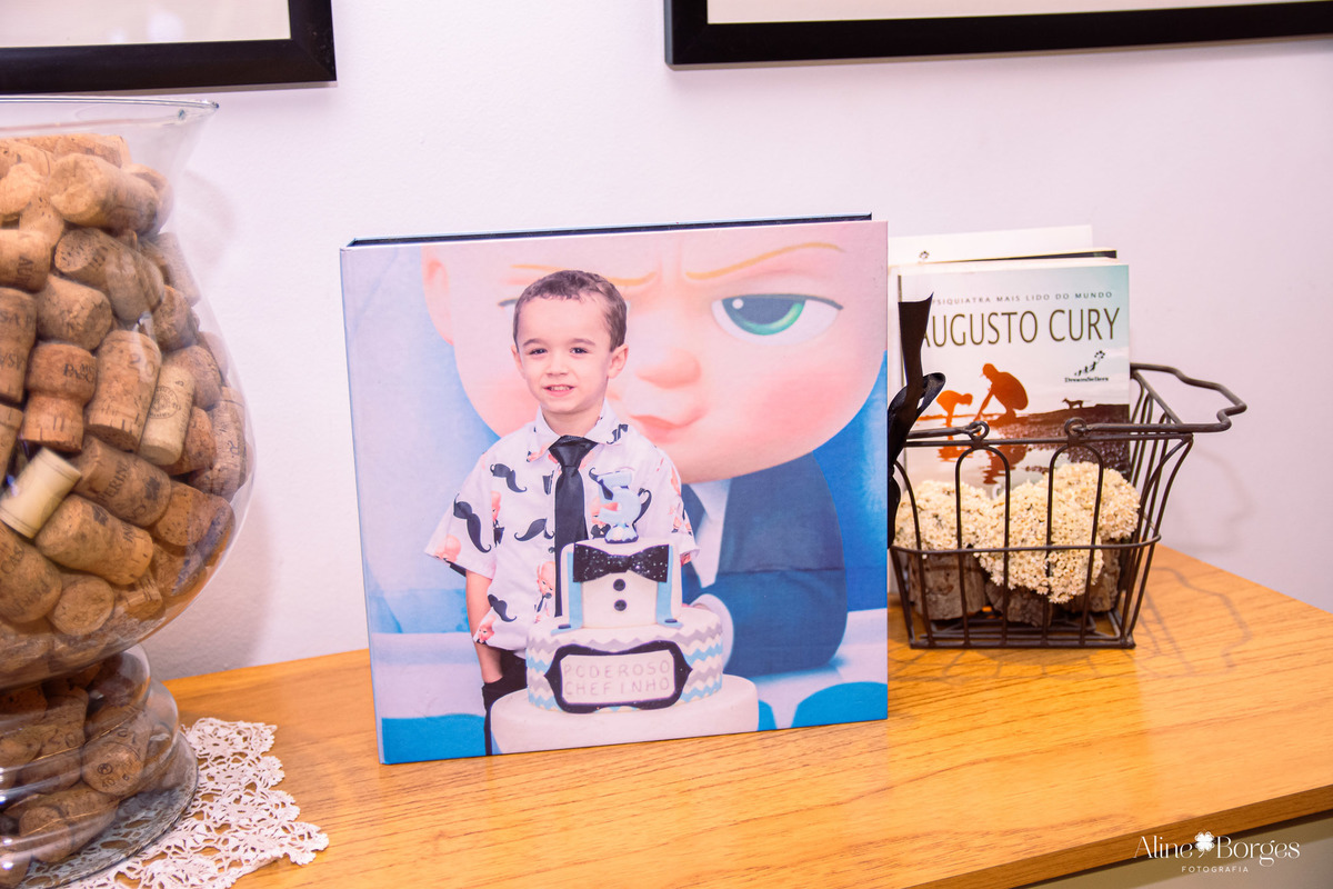 Como em todos os anos, a Alessandra, mãe do Davi, escolheu eternizar esse capítulo em um álbum fotográfico estilo fotolivro. Afinal, fotos de momentos especiais merecem o toque do papel.
